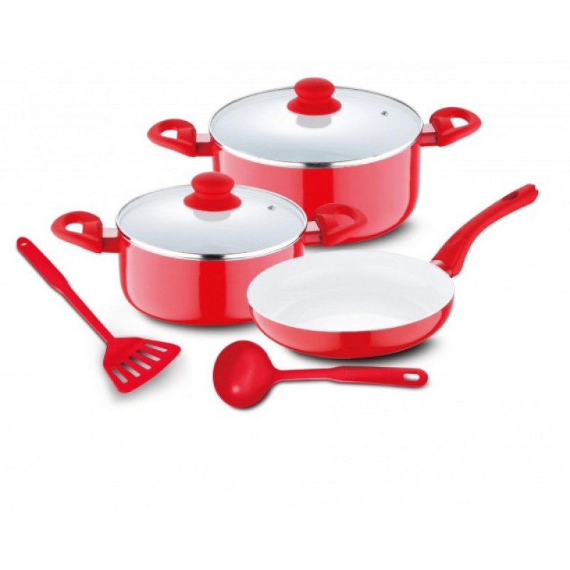 RENBERG Sada riadu s keramickým povrchom 7 ks, červená RB-1196cervsada riadu 7ks