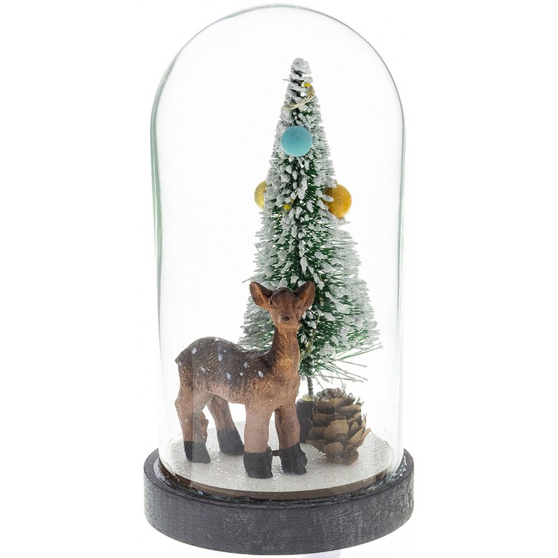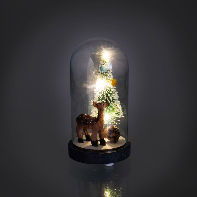 - Vianočný sklenená kopulka s dreveným dekorom- 3 LED