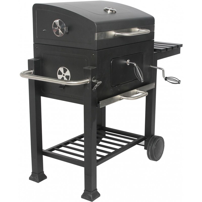 - vzdialenosť vane s rozžeraveným uhlím od grilovaného pokrmu sa ľahko reguluje pomocou spoľahlivého otočného ovládača
