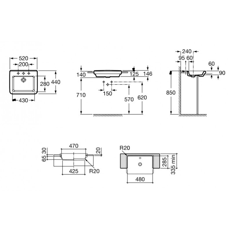- Um nach Österreich zu versenden, besuchen Sie Roca Dama Halbeinbau Waschtisch mit Instalationset 52 x 44 cm, MaxiClean 732778S00M