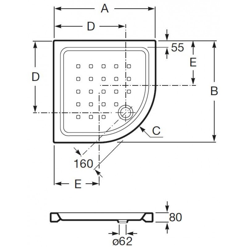Roca Easy Angular akrylátová sprchová vanička štvrťkruhová 75 x 75 cm, biela 7374795000Rozmery: