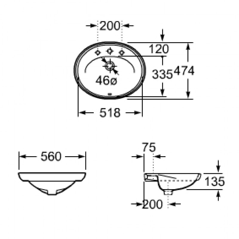 Roca Fidji umývadlo zápustné 56 x 47,5 cm A327873000* Umývadlo zápustné do dosky