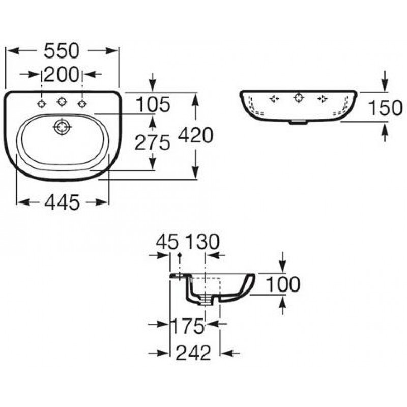 Roca Meridian polozápustné umývadlo 55 x 42 cm, MaxiClean 732724S00MRozmery výrobku: