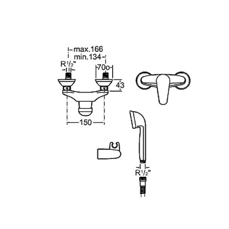 Roca Monojet-N vaňová / sprchová batéria nástenná so sprchou a prísl. A5A2039C00* Dvouootvorová montáž