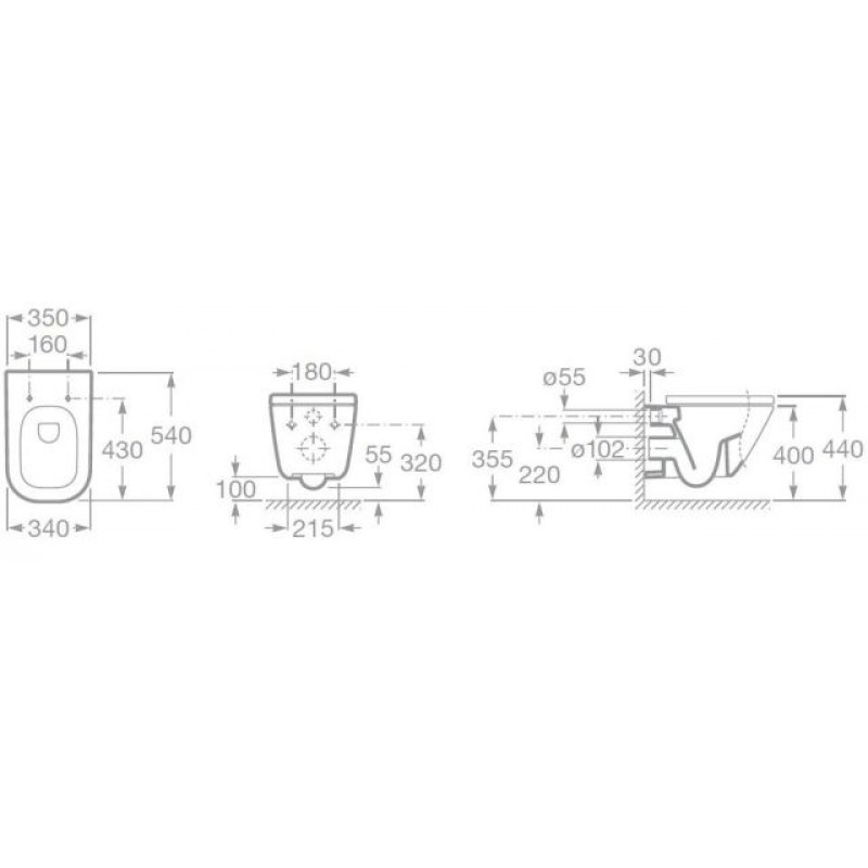 Roca The Gap závesný klozet, hlboké splachovanie, MaxiClean 734647700MRozmery výrobku: