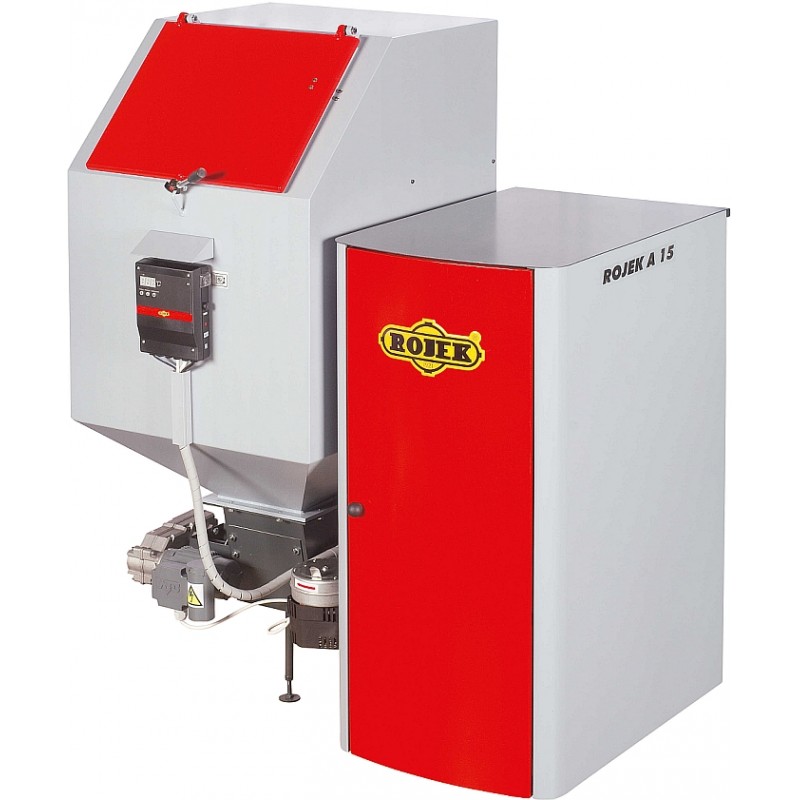 Automatický teplovodný kotol ROJEK A 15 umožňuje automaticky spaľovať drevené pelety s priemerom 6 - 8 mm - kvalitné biele, ale aj s prídavkom kôry.
