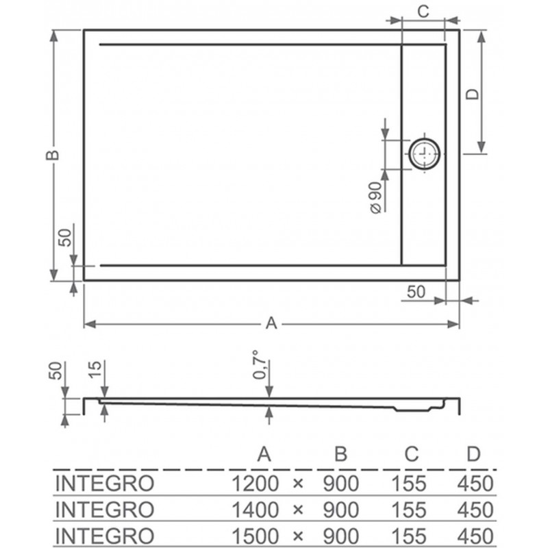 ROLTECHNIK Obdĺžniková sprchová vanička INTEGRO/1200x900 8000169