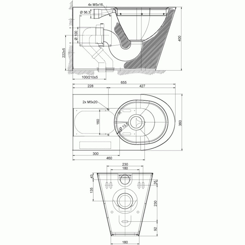 SLWN 14 - obj.č. 94140 - nerezové WC (bez sedátka)