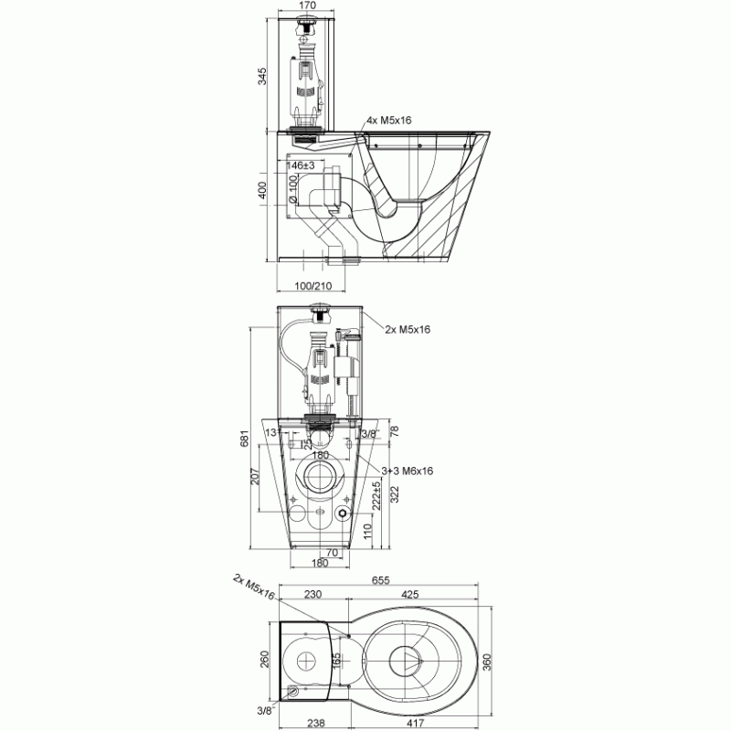 - Pro odeslání do Česka navštivte SANELA Nerezové kombi WC SLWN 15 se spodním přívodem vody 94150