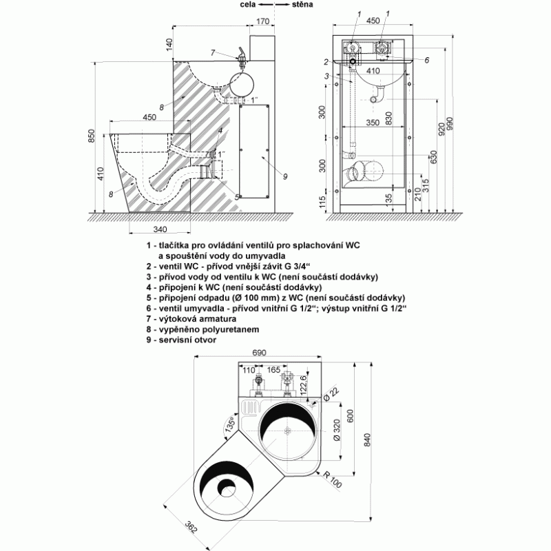- Pro odeslání do Česka navštivte SANELA WC s umyvadlem do rohu SLWN 18L, WC na zemi vlevo, servisní otvor 94181