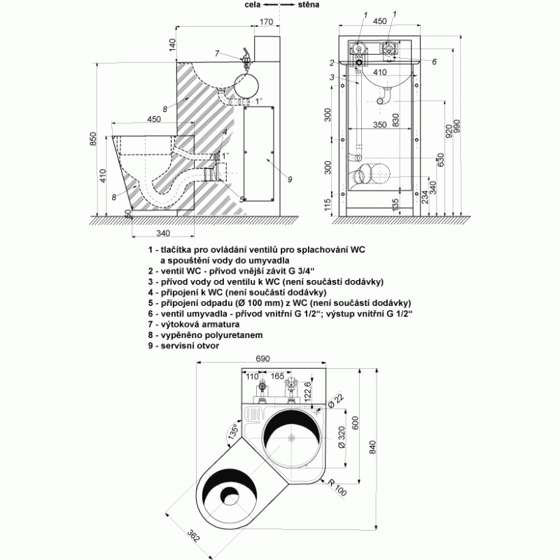 - Pro odeslání do Česka navštivte SANELA WC s umyvadlem do rohu SLWN 18ZL, WC závěsné vlevo, servisní otvor 94183