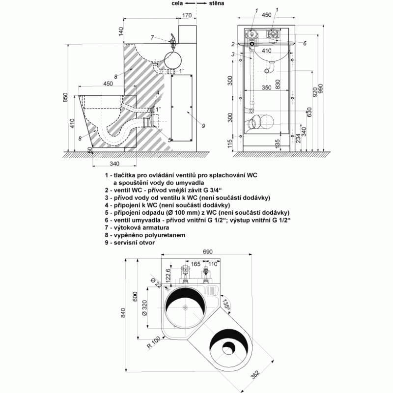 - Pro odeslání do Česka navštivte SANELA WC s umyvadlem do rohu SLWN 18ZP, WC závěsné vpravo, servisní otvor 94184