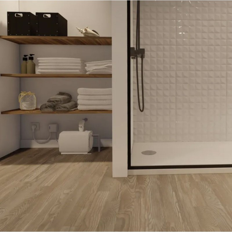 Sanifloor+ je moderný prečerpávací systém určený na inštaláciu bezbariérových spŕch tam, kde nie je možné odvádzať vodu samospádom do kanalizácie. Systém sa skladá zo sacieho čerpadla a odtokového kompletu s integrovaným modulom detekcie vody. Keď začne voda pritekať do odtokového kompletu, detekčný modul odošle rádiový signál, ktorý automaticky aktivuje čerpadlo.