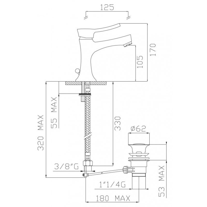 Stojánková páková umývadlová batéria s automatickou výpusťou.