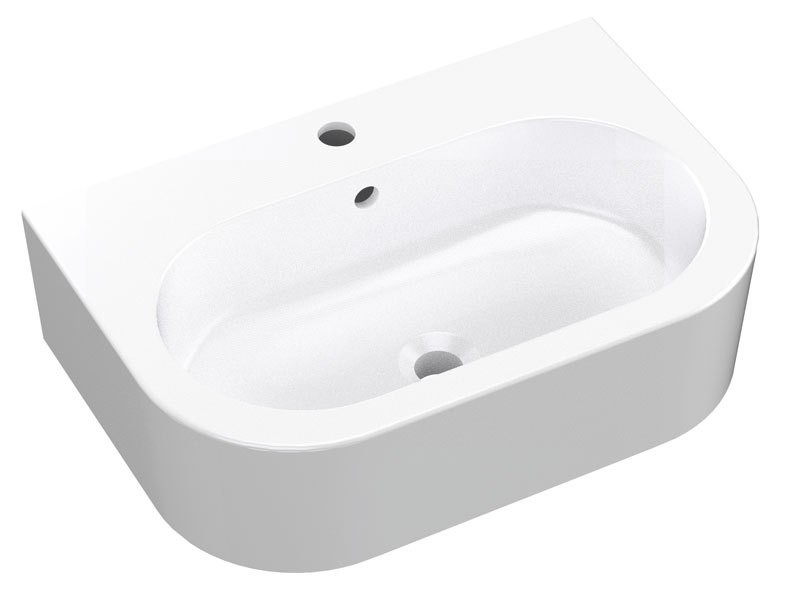Keramické umývadlo s prepadom a jedným otvorom pre batériu.