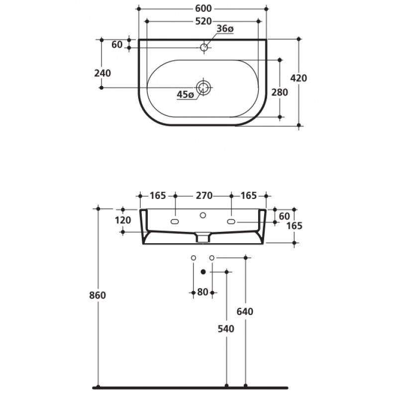 Za príplatok je možné dodať umývadlo bez otvoru pre batériu.