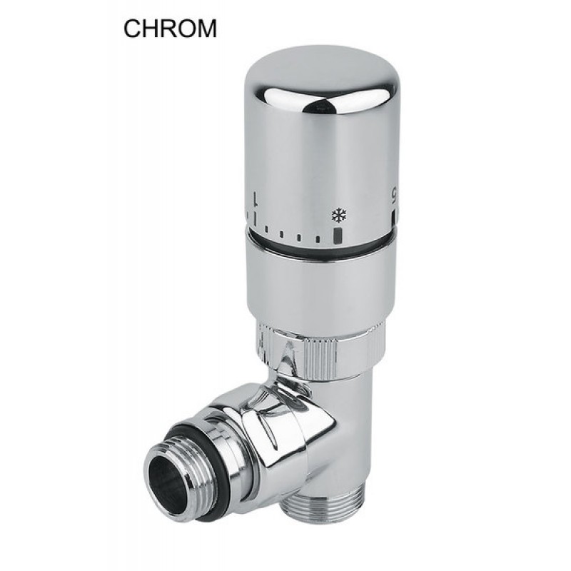 Dizajnová sada ventilov s termostatickou hlavicou vhodná pre pripojenie vykurovacích telies, kde zákazník predpokladá kombináciu s elektrickým vykurovacím telesom s vnútorným závitom G1 / 2 ".