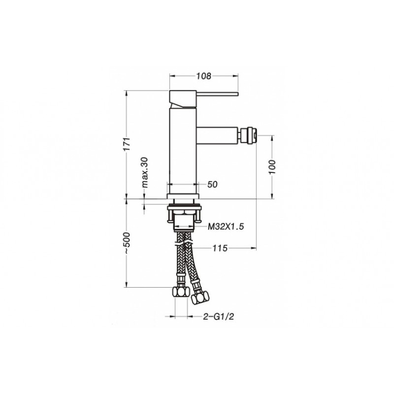 Vodovodné, stojanková páková bidetová batéria, bez výpuste.