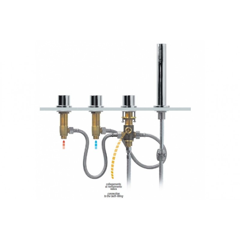 Štvorprvková batéria na okraj vane, 2 výstupy.