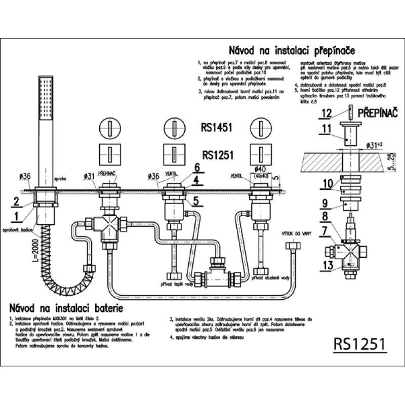 - Pro odeslání do Česka navštivte SAPHO NA OKRAJ VANY RS1251 Čtyřprvková baterie ROUND, 2 cesty