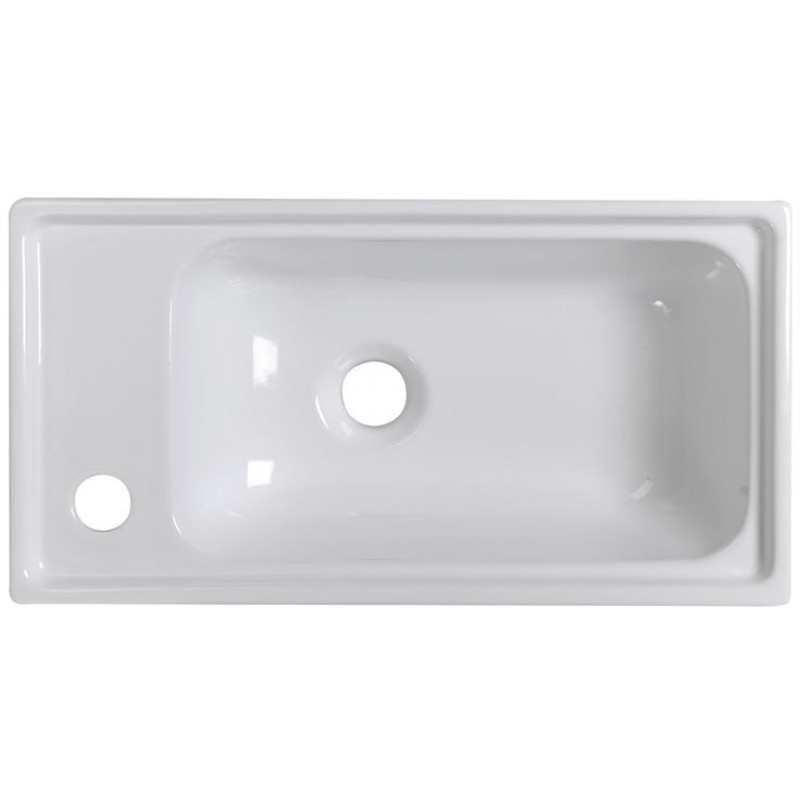 Hranaté keramické umývadielko je svojimi rozmermi je predurčené do malých kúpeľní alebo na samostatnú toaletu.Pri výbere batérie zvážte veľkosť umývadielka.