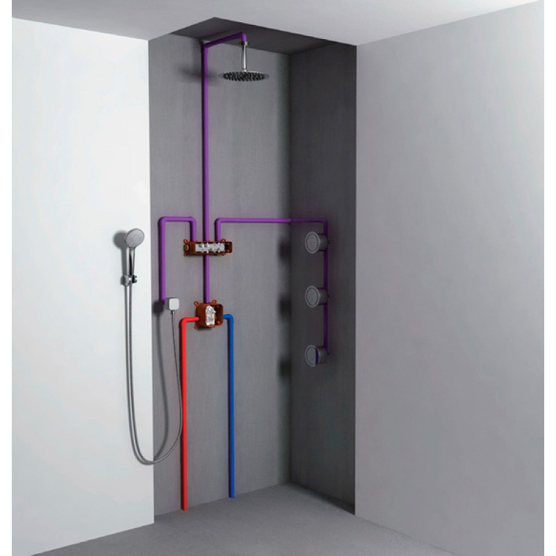Umožňuje kombináciu prepnutie hlavovej sprchy, ručné sprchy a bočných trysiek.