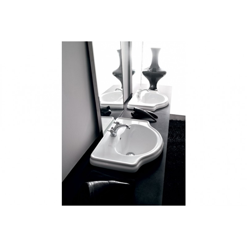 RETRO zápustné umývadlo s prepadom a jedným otvorom pre batériu. Na zákazku je možné dodať s tromi otvormi pre batériu.