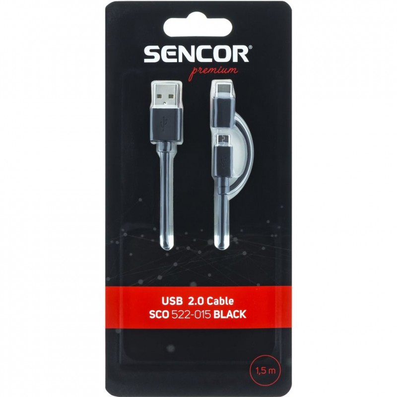 SENCOR SCO 522-015 BK USB A / M-Micro B / C 45013053USB 2.0 kábel na nabíjanie a prenos dát