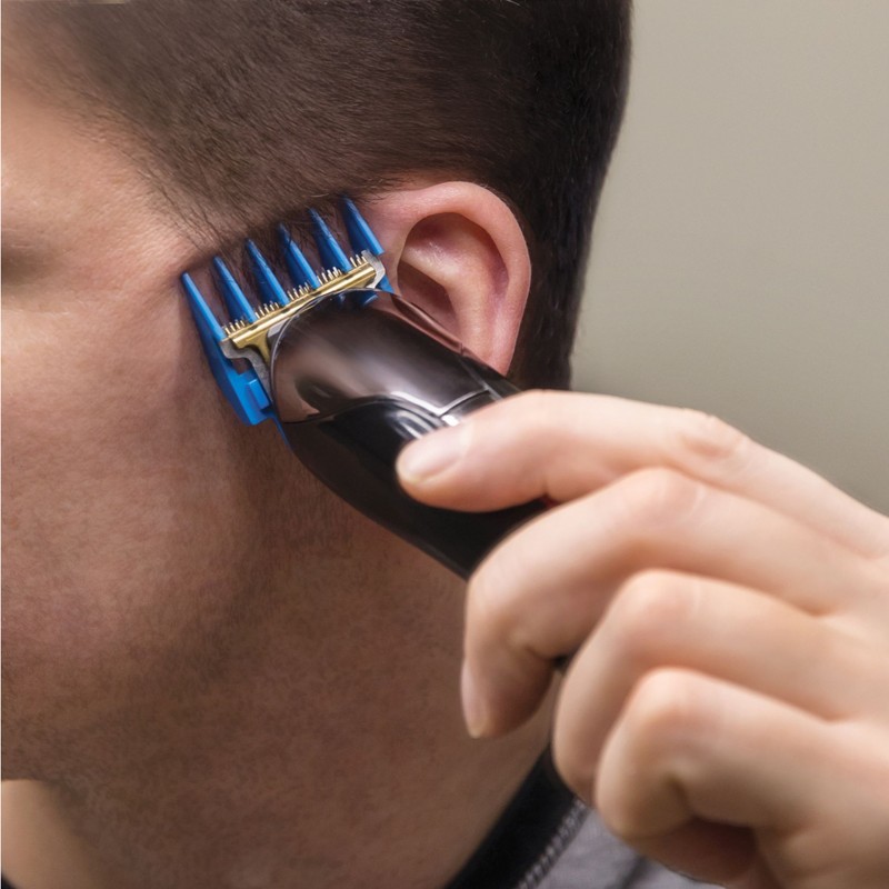 Dodávané príslušenstvo: Praktický stojan, hrebeň, nástavec na odstránenie chĺpkov z nosa, nástavec na odstránenie chĺpkov z tela, nadstavec na zostrih fúzov, nástavec na tvarovanie kontúr, štandardné nástavec na zostrih vlasov, veľký nástavec na zostrih vlasov, nástavec na zostrih vlasov 3 mm , nástavec na zostrih vlasov 6 mm, nadstavec na zostrih vlasov 9 mm, nadstavec na zostrih vlasov 12 mm, regulácia zostrihu fúzov, regulácia zostrihu vlasov, olej