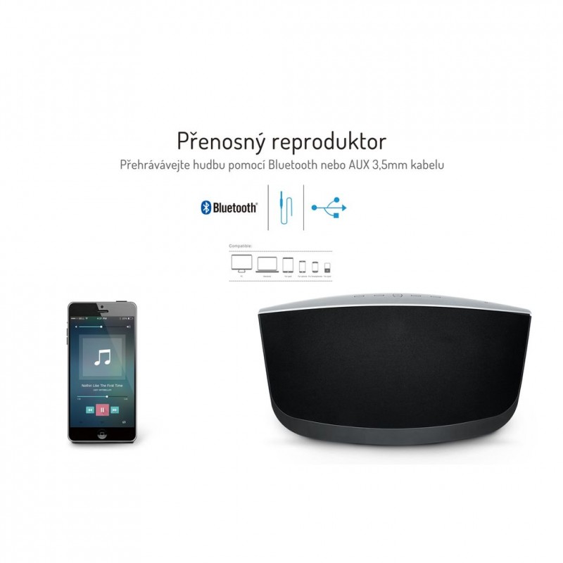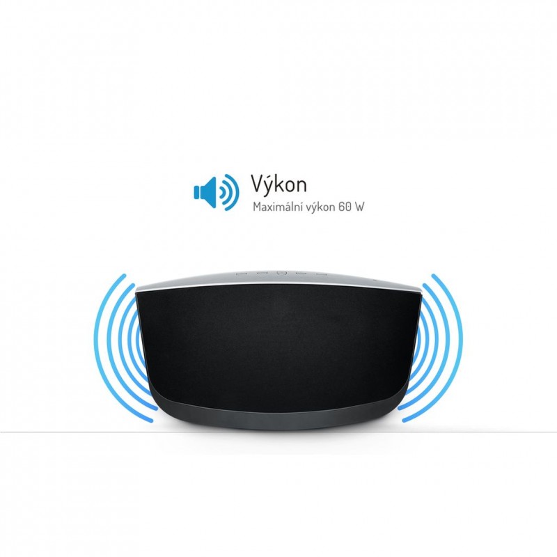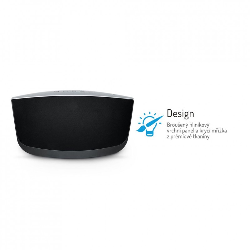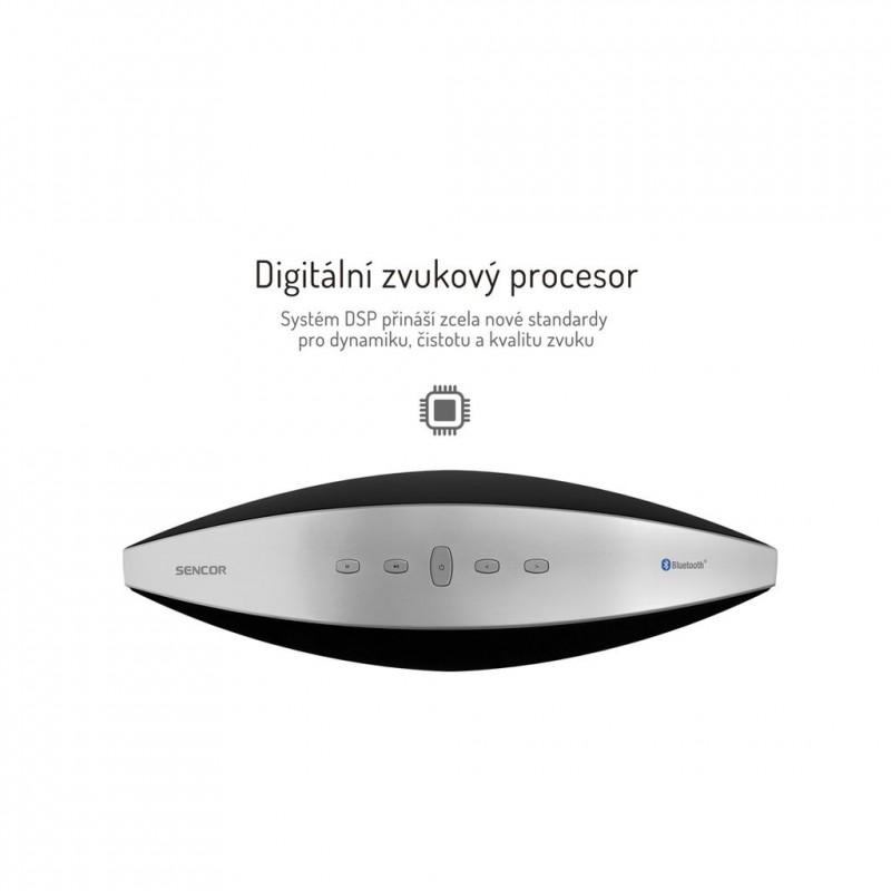 SENCOR SSS 6500N bluetooth speaker reproduktor 35049836Bezdrôtový reproduktor SSS 6500N ozvučí menšie i väčší priestor podľa Vašich predstáv. Krycia mriežka reproduktora je potiahnutá prémiovú látkou pre minimálne skreslenie zvuku a vrchný panel je vyrobený z brúseného hliníka pre splynutie s moderným interiérom. Systém DSP prináša úplne nové štandardy pre dynamiku, čistotu a kvalitu zvuku, o ktorý sa starajú 2 stredovej reproduktory a 1 subwoofer s maximálnym výkonom 60 W. Pomocou funkcie NFC budete bezdrôtovo pripojení k reproduktoru za pár sekúnd. Svojou obľúbenú hudbu si môžete púšťať pomocou bezdrôtového rozhrania Bluetooth s dosahom až 15 metrov, z USB kľúčenky, harddisku alebo z iného zariadenia pomocou 3,5 mm konektora Jack.