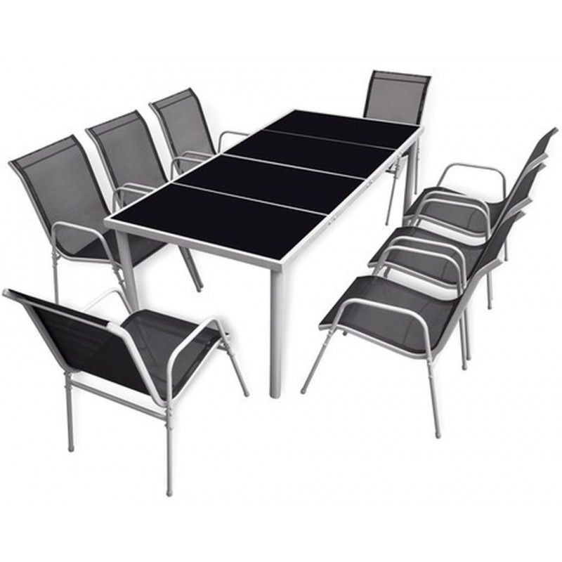 SHARKS VIOLA set záhradného nábytku 6 + 2, čierna SA064Typ stola: Obdĺžnikový stôl s 6 + 2 stoličkami