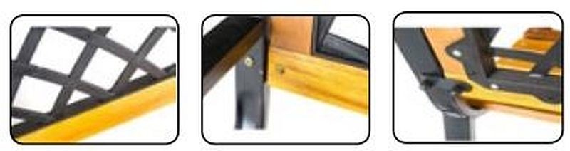 Stabilná a pevná záhradná lavička o celkovej nosnosti až 150 kg vyrobená z kvalitnej ocele a dubového dreva.Konštrukcia z oceľových trubiek