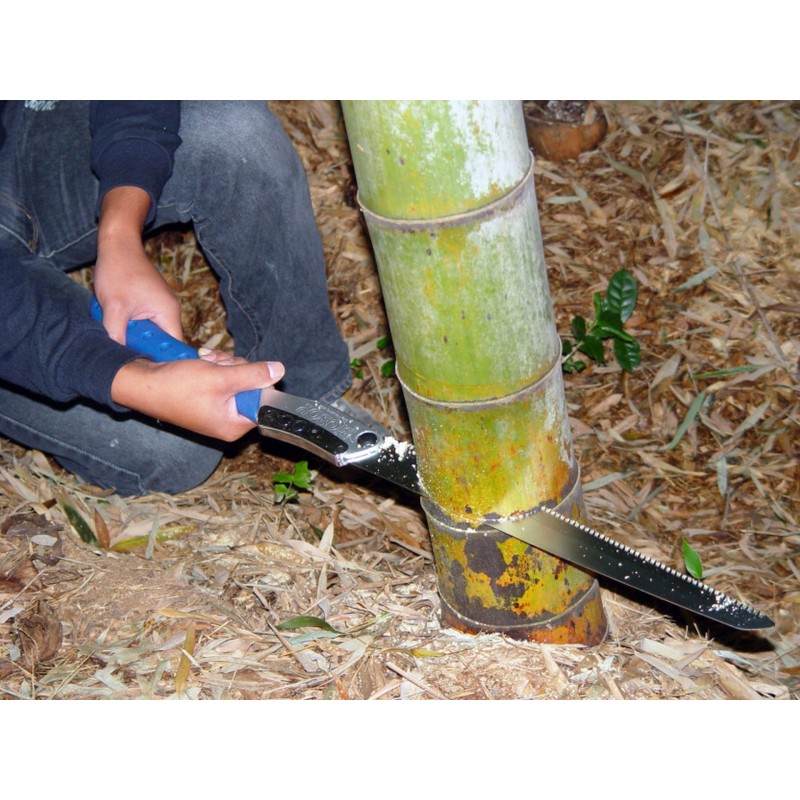 Pílu možno jednoducho zložiť a rozložiť pomocou aretačného tlačidla, ktoré umožňuje nastavenie 2 rôznych polôh rezania. Gumová rukoväť zaisťuje bezpečný a pohodlný úchop a umožňuje obojručné použitie. Pre väčšiu praktickosť je v rukoväti otvor na pripevnenie karabíny alebo lana.