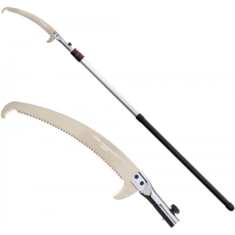 Prerezávanie vo vysokých korunách stromov vyžaduje spoľahlivú a všestrannú pílu, a tou je presne Silky Hayauchi. Ide o ľahkú teleskopickú tyčovú pílu, ktorá sa jednoducho používa. S jej pomocou môžete prerezávať stromy celý deň bez výraznej únavy. V plne rozloženom stave dosiahnete rez konárov až do výšky približne 6,5 metra. Čepeľ je navrhnutá tak, aby rezala predovšetkým v ťahu, takže stačí využiť hmotnosť hliníkovej konštrukcie a nechať pílu pracovať za vás.