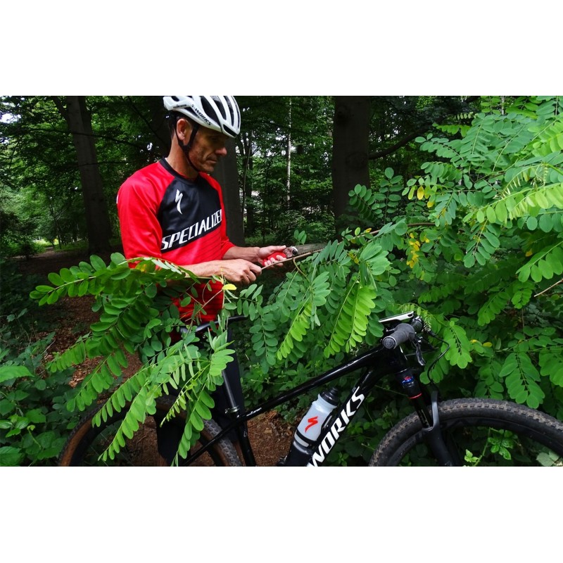 Pílu možno jednoducho skladať a rozkladať pomocou aretačného tlačidla, ktoré umožňuje nastaviť 2 polohy rezania. Gumová rukoväť tlmí vibrácie a poskytuje pevný a pohodlný úchop. Praktický otvor v rukoväti umožňuje pripevnenie karabíny alebo lana. Po zložení je ostrie bezpečne ukryté v rukoväti.