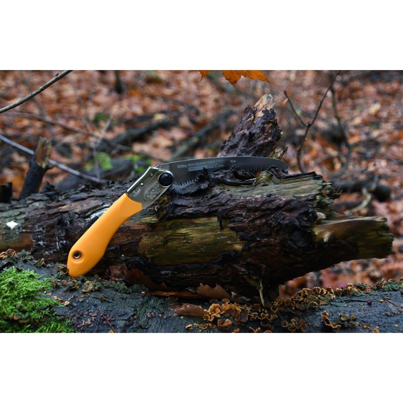Pílu možno jednoducho skladať a rozkladať pomocou aretačného tlačidla, ktoré umožňuje nastaviť 2 rôzne polohy rezania. Gumová rukoväť tlmí vibrácie a zabezpečuje pevný a pohodlný úchop. V rukoväti sa nachádza otvor pre karabínu alebo lano. Po zložení je ostrie bezpečne ukryté v rukoväti, čo zvyšuje bezpečnosť.