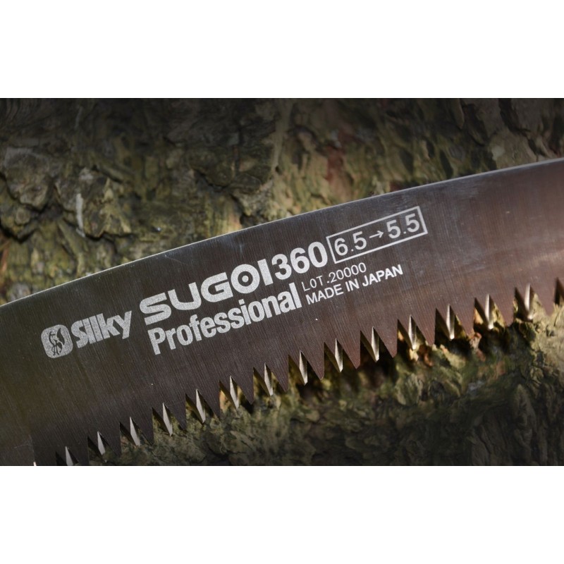 Píla Sugoi 360-6.5-5.5 je vybavená dlhým pílovým listom s dĺžkou 360 mm, ktorý je osadený extra agresívnymi zubami. Ide o tzv. progresívnu konfiguráciu zubov, kde sa hustota pohybuje od 5,5 do 6,5 zubu na 3 cm. Zuby bližšie k rukoväti sú jemnejšie pre jednoduchšie začatie rezu, zatiaľ čo zuby na konci čepele sú hrubšie a zabezpečujú rýchlejší úber materiálu a efektívnejší rez.