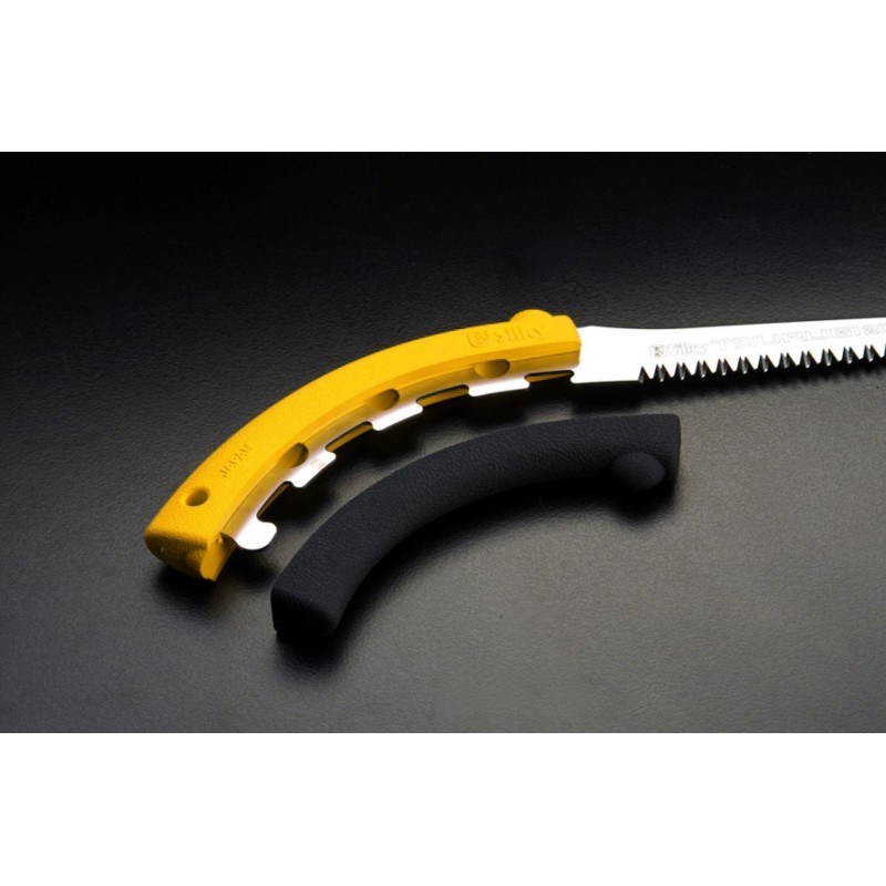 Pohodlný úchop za všetkých podmienok zabezpečuje revolverová rukoväť typu Genki, ktorá je tvorená len dvomi gumenými časťami dokonale obopínajúcimi oceľové telo píly. Vďaka tomu na nej nenájdete žiadne skrutky ani matice a pri údržbe nie je potrebné žiadne náradie.