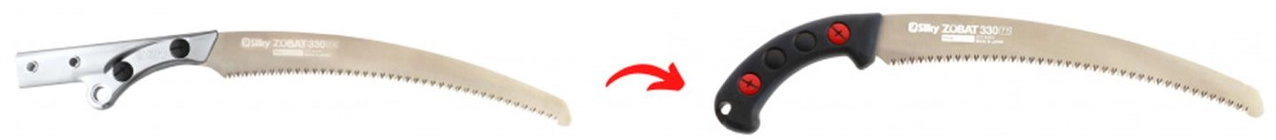 Agresívne zakrivená čepeľ s dĺžkou 330 mm je vybavená originálnymi zubami Silky s hustotou 7,5 zuba na 3 cm. Táto kombinácia zabezpečuje rýchly, presný a plynulý rez, ideálny na prerezávanie stromov. Vďaka použitiu kvalitných oceľových zliatin zostávajú zuby dlhodobo ostré aj pri intenzívnom používaní a zanechávajú hladký rez.
