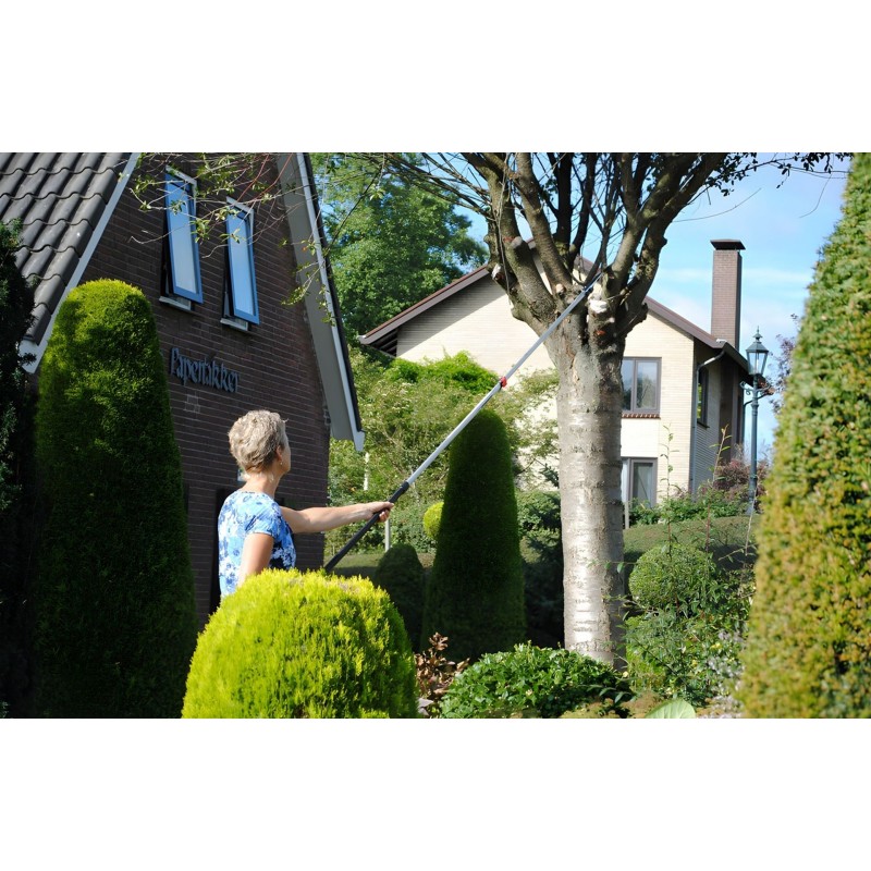 Maximálna dĺžka píly je 2,7 m, zatiaľ čo v zloženom stave meria len 1,75 m, čo uľahčuje transport a skladovanie. Dvojité istenie (tlačidlá a páky) zabezpečuje maximálnu stabilitu nastavenej dĺžky. Spodná časť je vybavená gumovou rukoväťou pre bezpečný a pohodlný úchop aj za mokra.