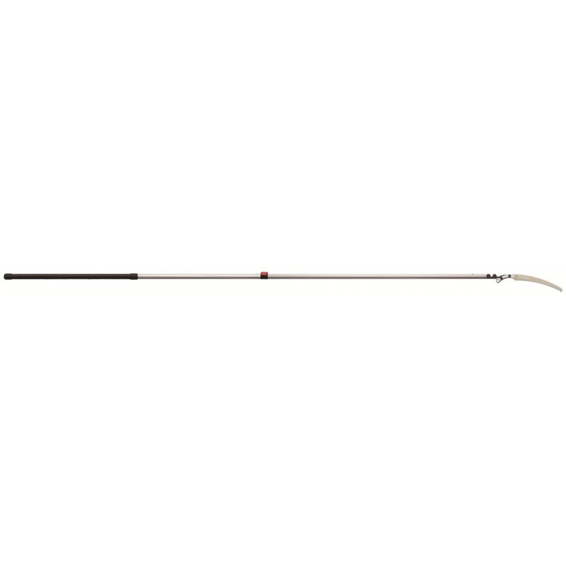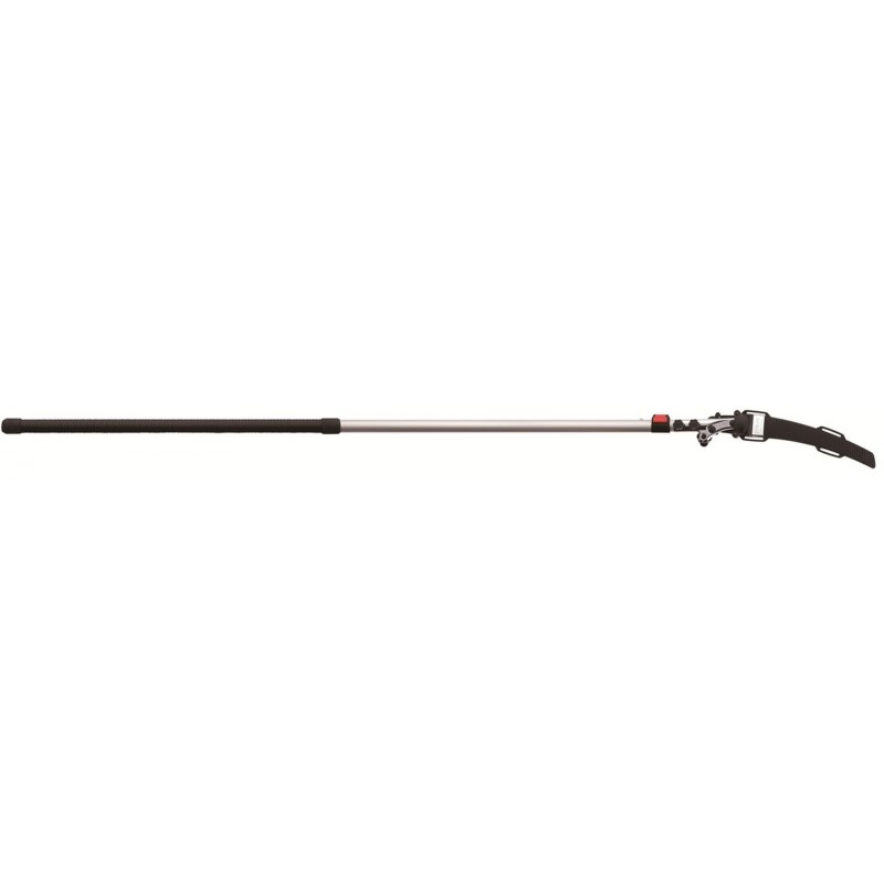 Hliníková násada s oválnym profilom poskytuje presnú kontrolu nad smerom rezu a zároveň zvyšuje pevnosť a tuhosť celej konštrukcie, čím minimalizuje ohýbanie. Maximálna dĺžka píly je 3,9 m, zatiaľ čo v zloženom stave má iba 2,35 m, čo uľahčuje transport. Dva zaisťovacie mechanizmy (tlačidlá a páky) zabezpečujú stabilné a bezpečné nastavenie dĺžky. Spodná časť je vybavená gumovou rukoväťou pre pohodlný a bezpečný úchop aj za mokra.
