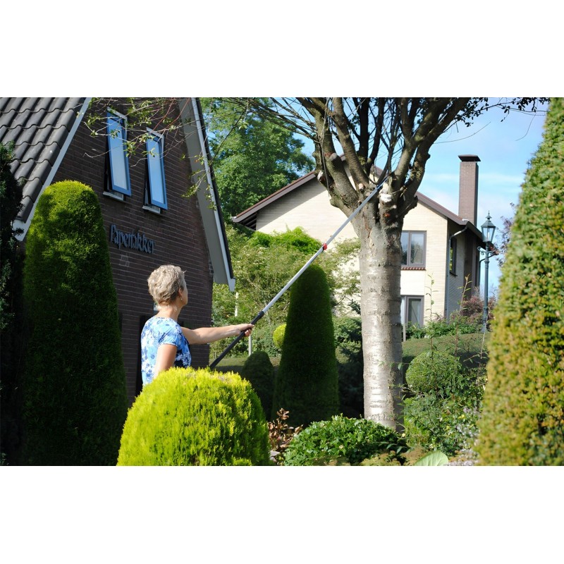 Prerezávajte stromy ako profesionál s pílou Zübat! Ide o ľahkú teleskopickú tyčovú pílu, ktorá sa jednoducho používa aj v hustom poraste. Vďaka vysokému reznému výkonu môžete pracovať celý deň bez výraznej únavy. V plne rozloženom stave dosiahnete na vetvy až do výšky približne 5,5 metra. Píla pracuje primárne v ťahu, preto stačí využiť váhu kvalitnej hliníkovej konštrukcie a nechať nástroj pracovať za vás.