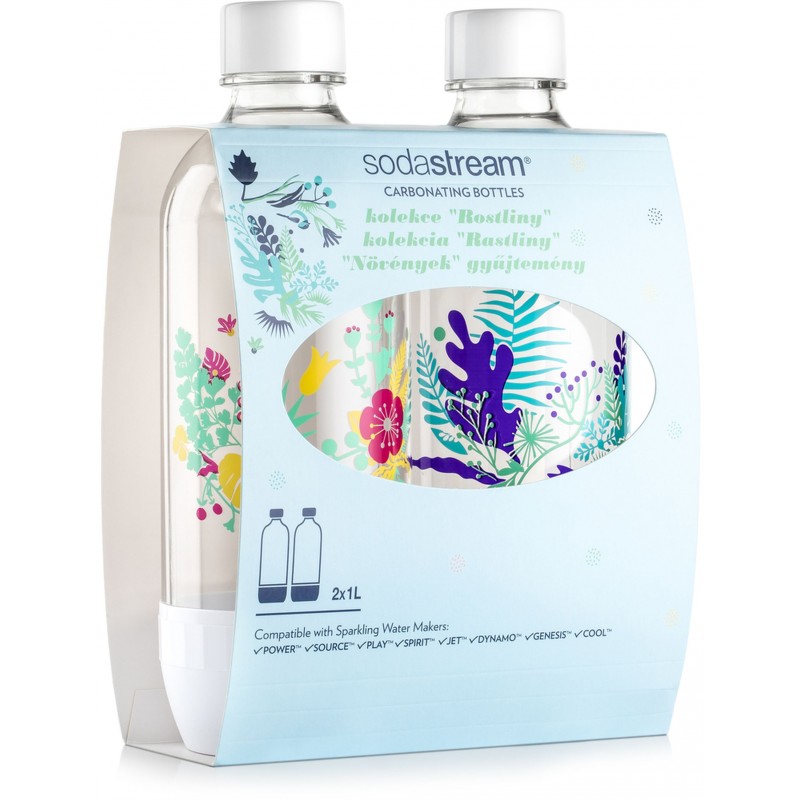 - Prémiová farebná edícia s atraktívnymi vzormi rastlínSada 2 ks tlakových nápojových fliaš pre výrobníky domáce perlivé vody SodaStream. Atraktívne farebné prevedenie poteší na jedálenskom stole rodinu i hostí. Domáce perlivá voda miesto ťahanie nepraktických plastových fliaš.