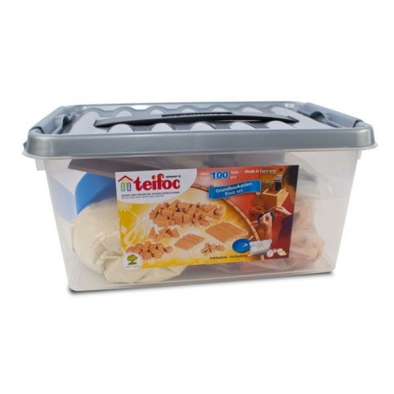 Stavebnice Teifoc - štartovacie setŠtartovací set, v praktickom plastovom boxe, kreatívne stavebnice z pravých pálených tehál a kukuričné malty.