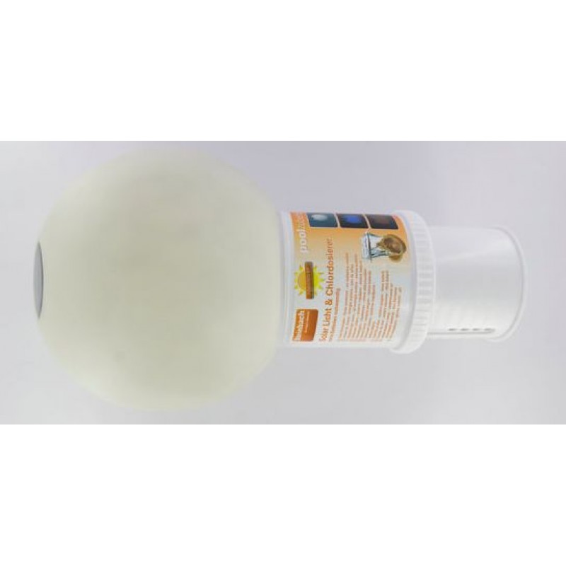 Plavák na dávkovanie chlóru Globe 079075Plávajúca dávkovacia nádoba na použitie bežnej bazénovej chémie vo forme tabliet s integrovaným solárnym osvetlením. Môžu byť použité tablety až do veľkosti 200 g. Integrovaný solárny článok a LED dióda v nočných hodinách osvetľujú hornú časť dávkovacieho plaváku nádhernými farebnými prechodmi.