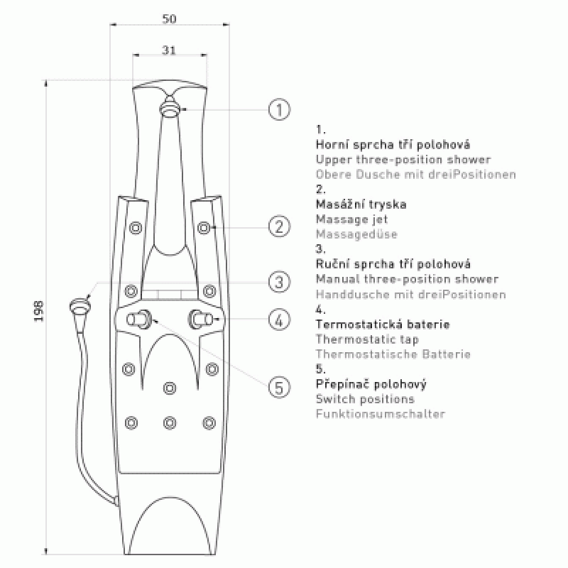 - Pro odeslání do Česka navštivte TEIKO Athos sprchový masážní panel 200 x 50 x 11cm, termostatickou baterií V262200N66T01001