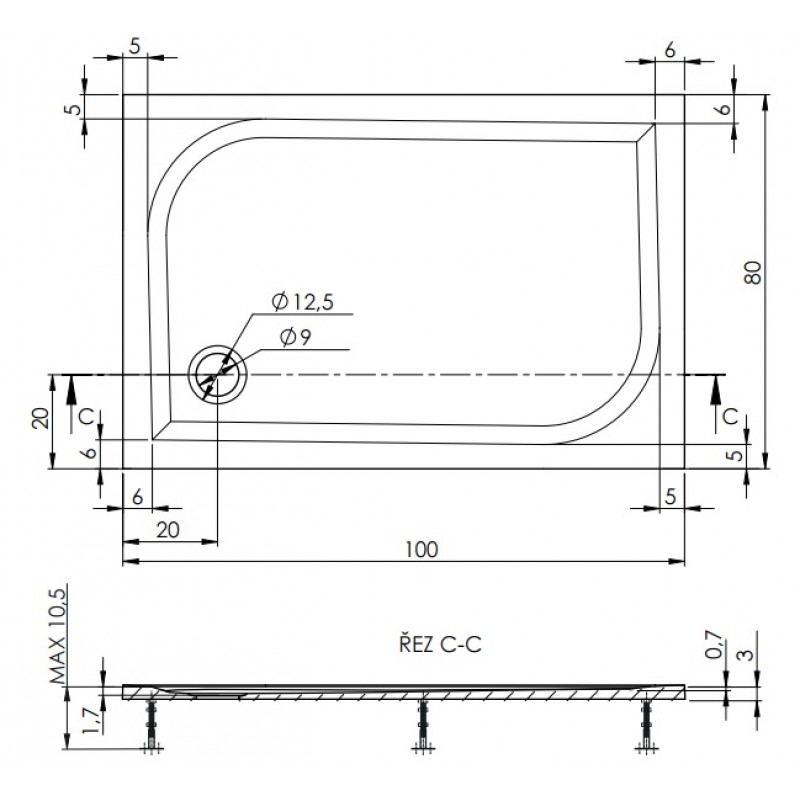 Súčasťou sprchovej vaničky DRACO sú aj výškovo nastaviteľné nožičky 80 - 100mm.