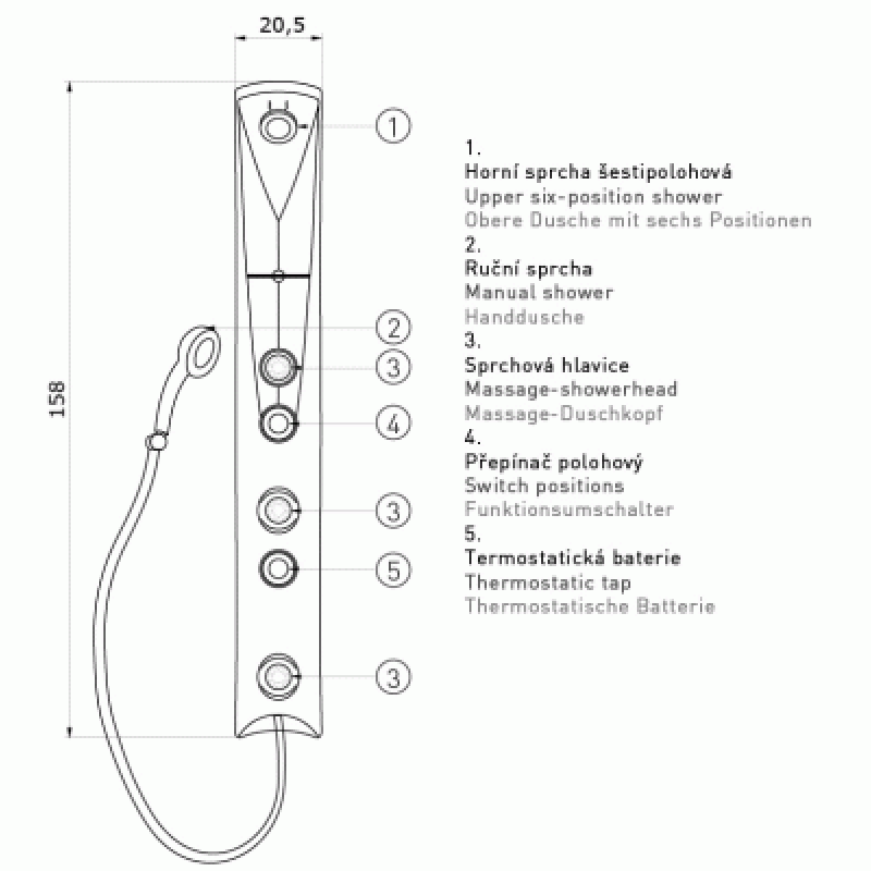 - Pro odeslání do Česka navštivte TEIKO Hios masážní panel s termostatickou baterií, metal V263160N65T01004