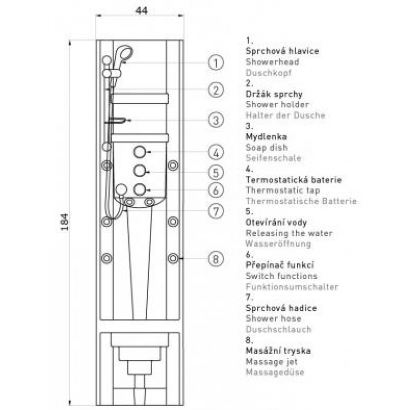 TEIKO PAMO Therm rohový masážny panel s termostatickou batériou V261185N65T01021Rozmery: 185 x 45 x 45 cm