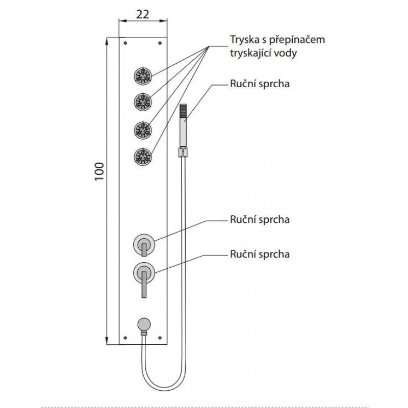 TEIKO rohový sprchový masážny panel 100 x 22 cm BOSS ECO P1 V262100N92T02011Rozmery: 100 x 22 cm